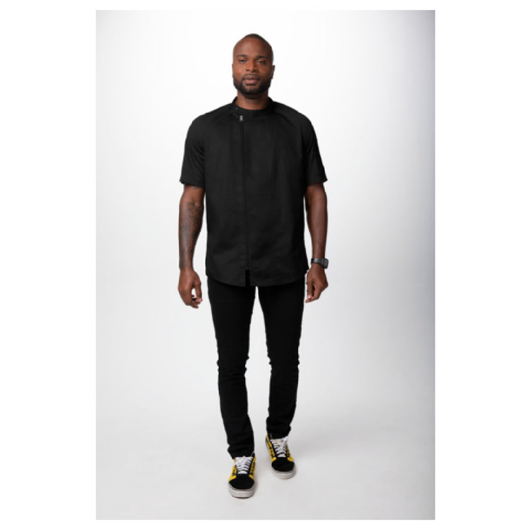 Chef Works CBZ03-BLK-4XL Varkala Chef Coat Raglan Short Sleeve Off-set Zip Front With Snap Collar