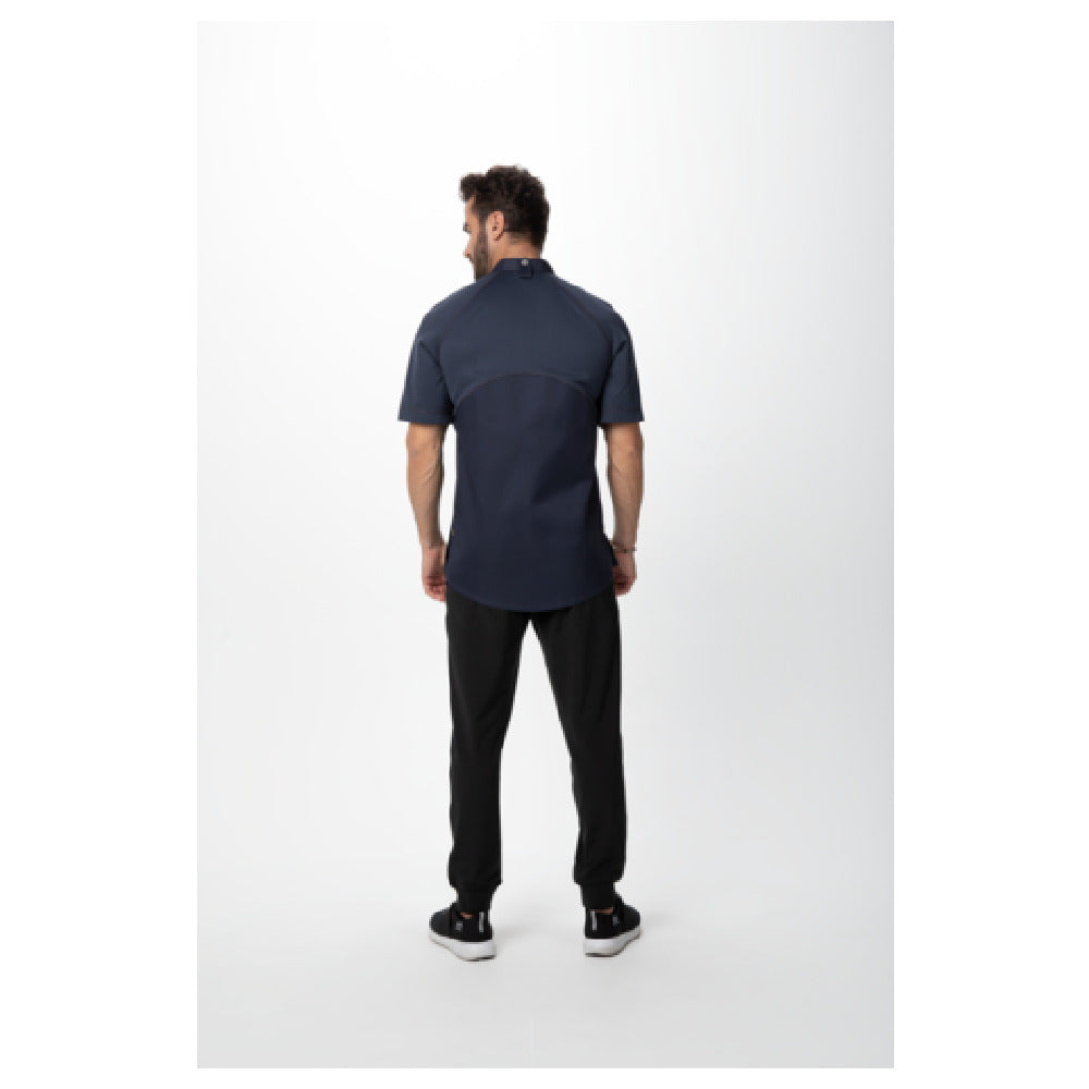 The Chef Works CBZ03-GRY-L Varkala Chef Coat is a meticulously designed garment that combines functionality and style for culinary professionals. Featuring a raglan short sleeve design, it offers ease of movement and comfort, making it ideal for fast-paced kitchen environments. The off-set zip front with snap collar adds a modern touch, while providing secure closure. This chef coat is crafted from a blend of 62/38 poly-cotton, enhanced by a 100% recycled polyester knit mesh, ensuring durability and breathability. The side slits contribute to additional comfort, allowing flexibility and a tailored fit. Practicality is at the forefront, with a left sleeve pocket for versatile storage and front concealed thermometer/pen pockets that cater to the needs of professional chefs. The back collar apron tab is a thoughtful addition, enhancing convenience during long hours of service. Designed in a sophisticated grey color, this coat is available in size L, appealing to culinary experts seeking both performance and aesthetic appeal. The color-matching knit mesh underscores its modern look, making the Chef Works CBZ03-GRY-L Varkala Chef Coat a valuable asset in various culinary settings, from high-end restaurants to bustling catering services.