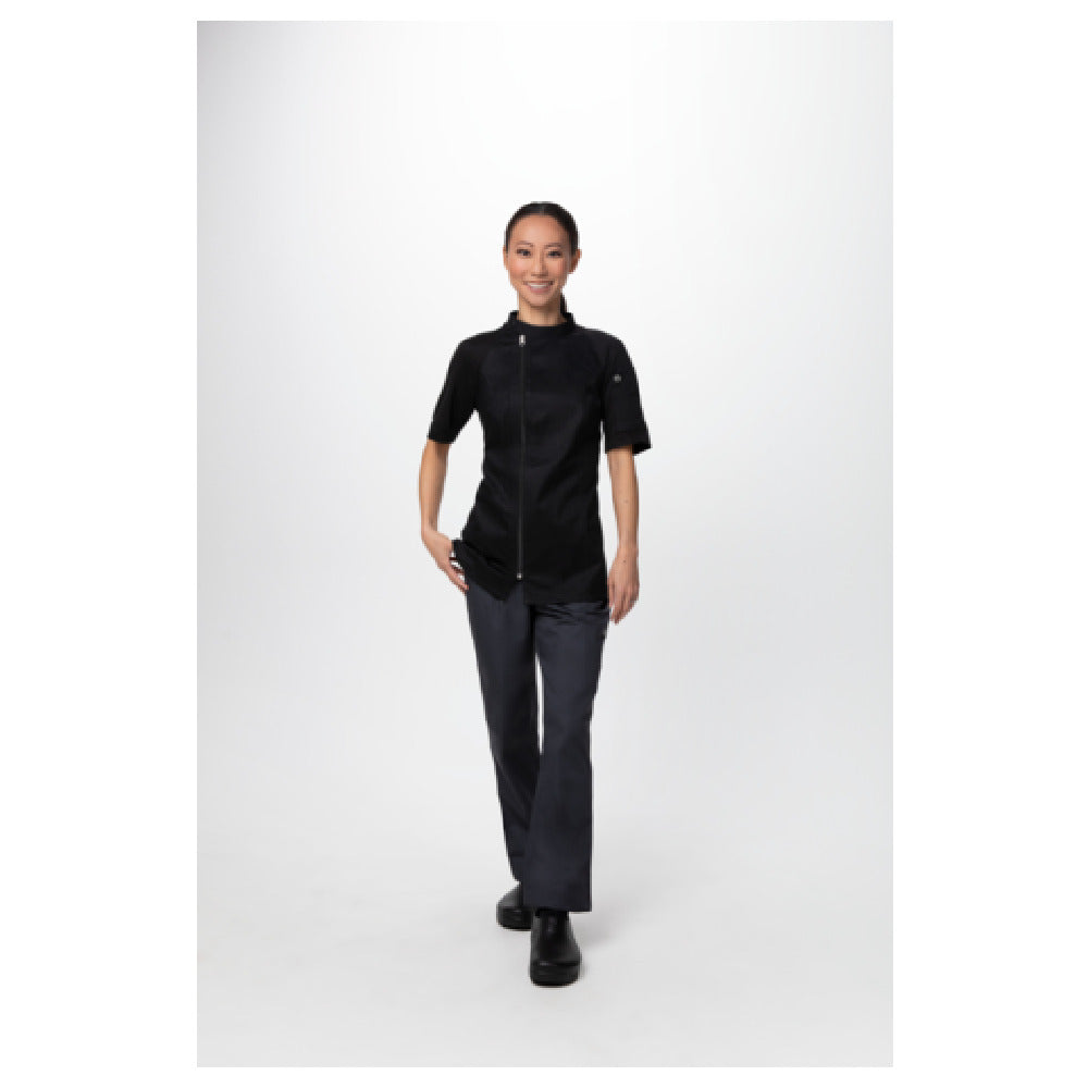 Chef Works CBZ03W-BLK-2XL Women's Varkala Chef Coat Raglan Short Sleeve Off-set Zip Front With Snap Collar