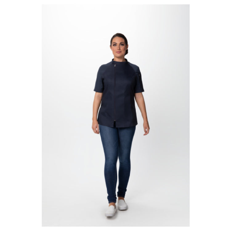 Chef Works CBZ03W-GRY-S Women's Varkala Chef Coat Raglan Short Sleeve Off-set Zip Front With Snap Collar