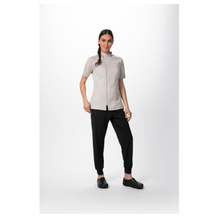 Chef Works CBZ03W-NAT-M Women's Varkala Chef Coat Raglan Short Sleeve Off-set Zip Front With Snap Collar