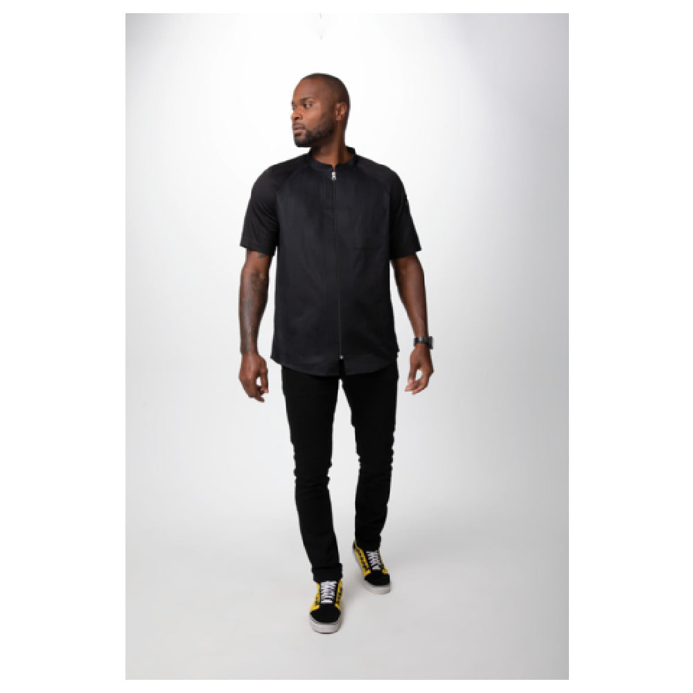 Chef Works CBZ04-BLK-4XL Arcadia Chef Coat Raglan Short Sleeve Center Zipper