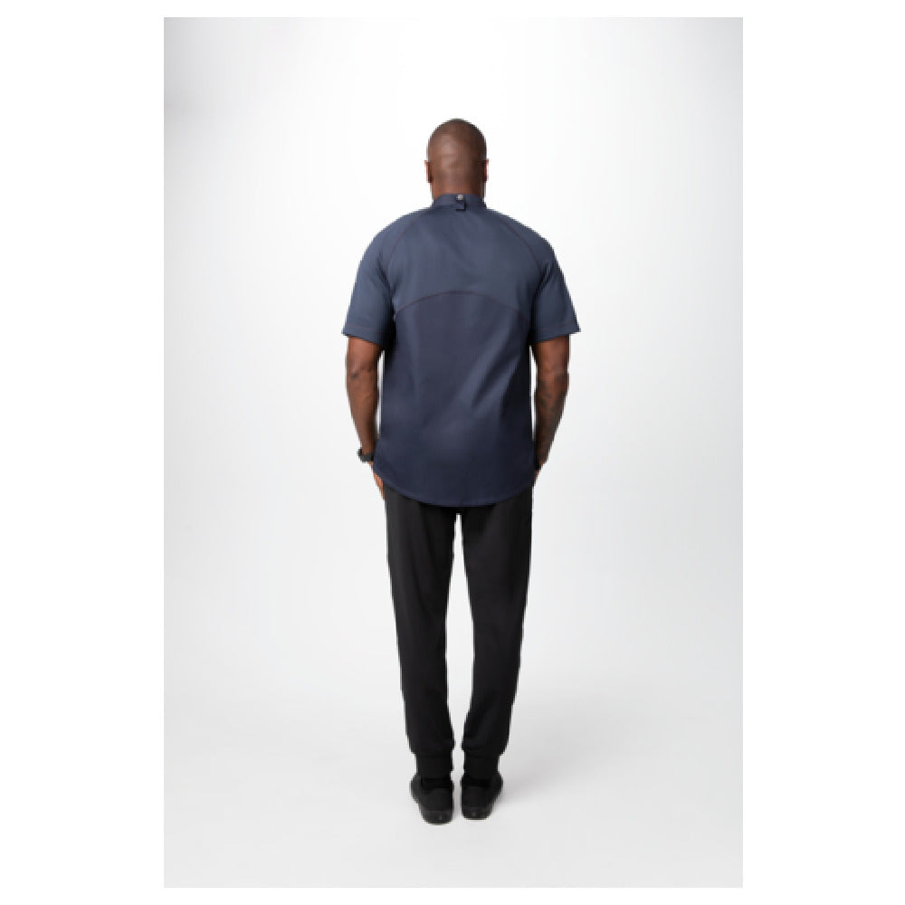 The Chef Works CBZ04-GRY-M Arcadia Chef Coat Raglan Short Sleeve Center Zipper is an essential garment for culinary professionals seeking a blend of comfort, functionality, and sustainability. Designed with raglan short sleeves, it ensures ease of movement and a modern look. The center zipper provides quick and convenient fastening, while side slits enhance breathability and comfort during long kitchen shifts. Featuring a left chest pocket and a left sleeve thermometer pocket, this coat offers practical storage solutions for essential kitchen tools. Additionally, the back collar apron tab is a thoughtful inclusion for chefs who frequently use aprons. Constructed from a 62-38 poly-cotton blend, this chef coat is durable yet lightweight, perfect for extended wear. The color-matching knit mesh, made from 100% recycled polyester, highlights an eco-conscious approach without compromising on performance. Available in an appealing grey color and medium size, the Arcadia Chef Coat stands out as a versatile choice for chefs in various culinary environments, from bustling restaurant kitchens to tranquil culinary classrooms. Its sophisticated design and resilient material make it a valuable asset for chefs who prioritize both style and practicality in their professional attire.