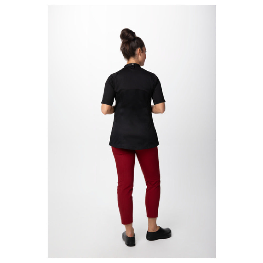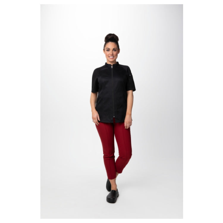 Chef Works CBZ04W-BLK-M Women's Arcadia Chef Coat Raglan Short Sleeve Center Zipper