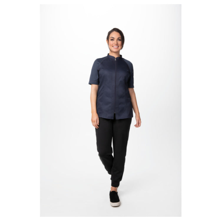 Chef Works CBZ04W-GRY-S Women's Arcadia Chef Coat Raglan Short Sleeve Center Zipper