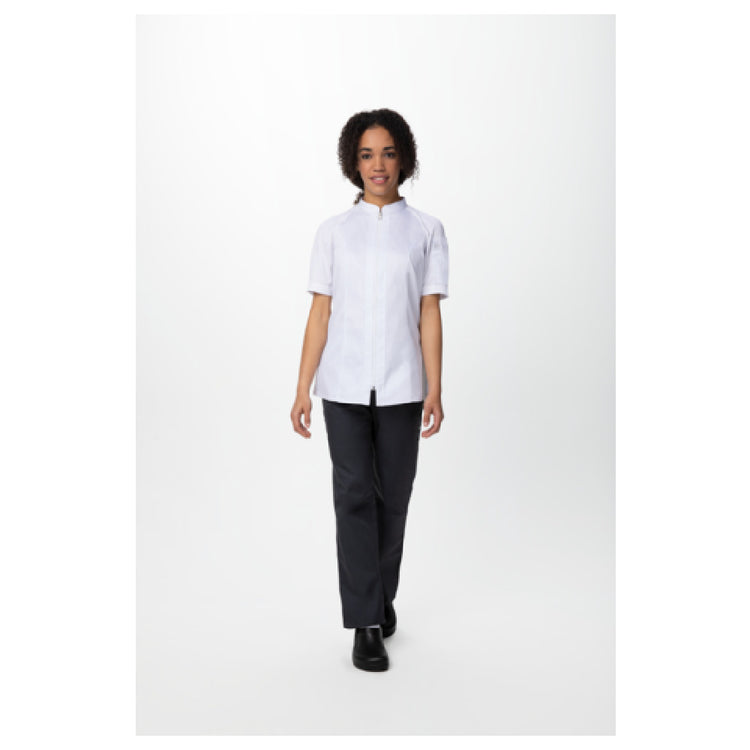 Chef Works CBZ04W-WHT-3XL Women's Arcadia Chef Coat Raglan Short Sleeve Center Zipper