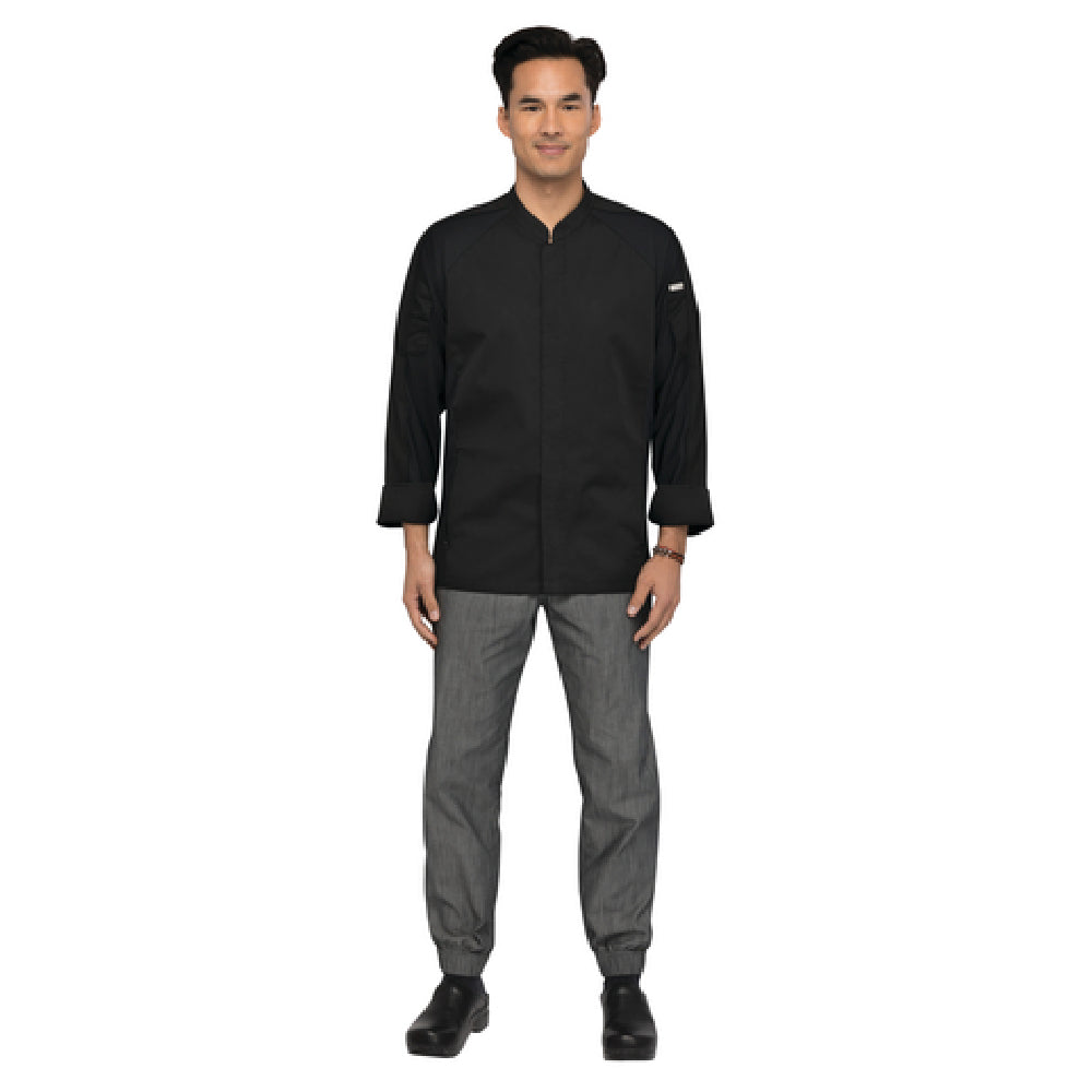 Chef Works CES04-BLK-L Valencia Prestige Knit Chef Coat Single-breasted Long Sleeves With Piping Detail On Seams
