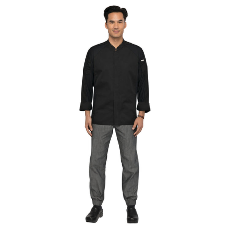 Chef Works CES04-BLK-M Valencia Prestige Knit Chef Coat Single-breasted Long Sleeves With Piping Detail On Seams
