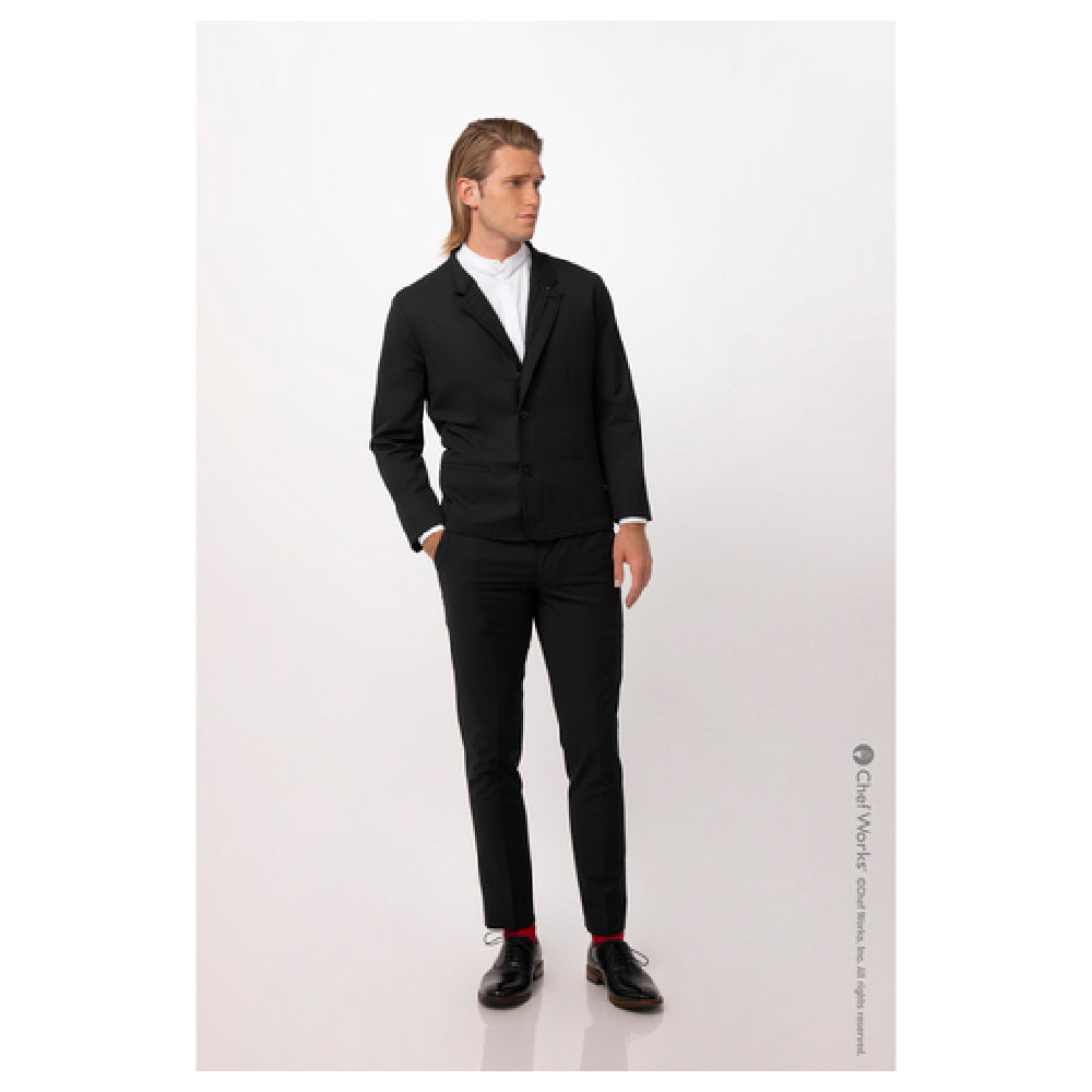 The Chef Works CQZ01-BBK-M Men's Apex Chef Coat is a meticulously designed garment tailored for culinary professionals who demand both style and functionality. This medium-sized coat is crafted from a blend of 70% polyester and 30% rayon, offering a balance of durability and comfort. The long sleeves provide full coverage, while the banded/notched collar with a button tab adds a touch of sophistication and professional appeal. The coat features a zip/button front with a concealed placket, ensuring a sleek appearance and easy wear. For practicality, it includes inset hip pockets and an inner left chest pocket, offering ample storage space for essential tools and personal items. Two back panel slits enhance mobility and ventilation, making it suitable for the dynamic kitchen environment. An inner lining adds an extra layer of comfort, making this chef coat a desirable choice for chefs working in fast-paced settings. Its classic black color and thoughtful design elements make it versatile across various culinary settings, from restaurants to catering services. The Chef Works CQZ01-BBK-M Men's Apex Chef Coat represents a harmonious blend of style, practicality, and quality, making it an indispensable addition to any chef’s wardrobe.