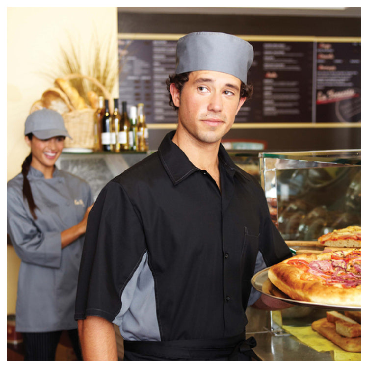 The Chef Works CSMC-BLM-3XL Men's Universal Shirt is designed with functionality and comfort in mind, featuring short sleeves and innovative Cool Vent™ panels strategically placed under the arms and down the sides. These panels enhance breathability and temperature regulation, making it ideal for busy kitchen environments. The shirt also showcases contrast topstitching and matching buttons, adding a touch of style to its practical design. With a left chest patch pocket, it provides convenient storage for small items, contributing to its utilitarian appeal. Crafted from a durable 65/35 poly/cotton blend, this shirt is both resilient and comfortable, ensuring longevity and ease of wear. Available in a versatile black/gray color scheme and size 3XL, it caters to a wide range of body types, promoting inclusivity within the culinary industry. The classic fit of this shirt is designed to accommodate the needs of chefs and kitchen staff, offering both comfort and a professional appearance. This garment is particularly well-suited for high-intensity culinary settings where the combination of durability, comfort, and style is essential. The Chef Works CSMC-BLM-3XL Men's Universal Shirt is a reliable choice for those seeking a balance of practicality and aesthetic appeal in their professional attire.