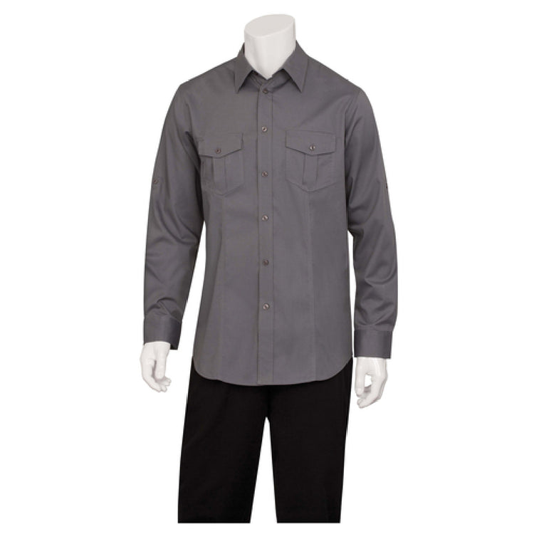 Chef Works DPDS-GRY-S Men's Pilot Shirt Roll-up Long Sleeves With Button Tab 2-button Cuffs