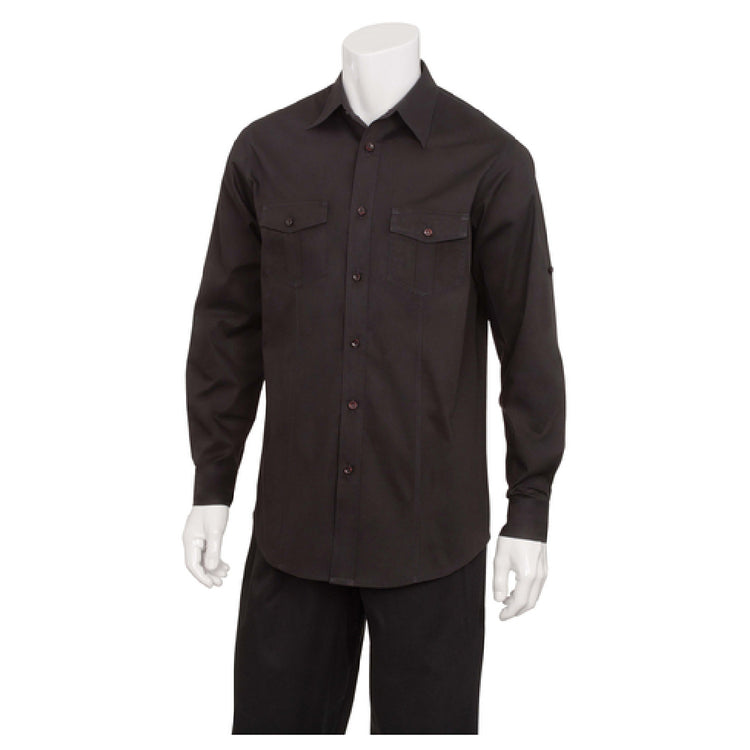 Chef Works DPDSBLKM Men's Pilot Shirt Roll-up Long Sleeves With Button Tab 2-button Cuffs
