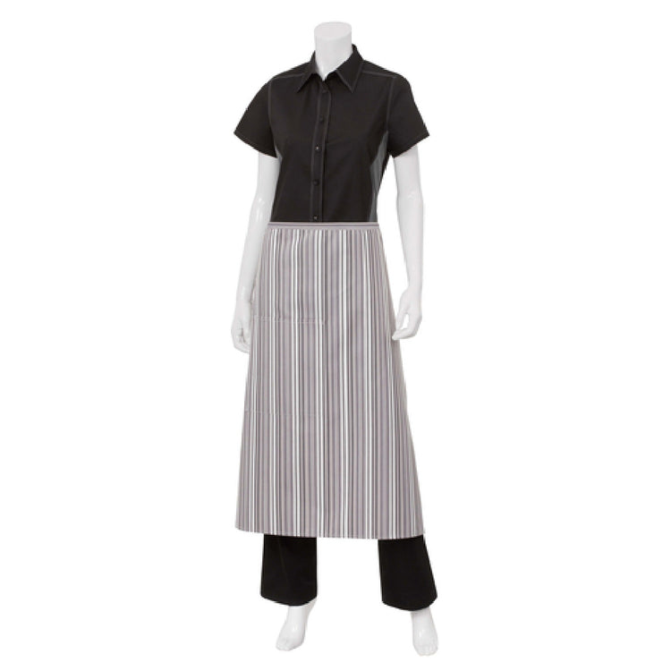 The Chef Works F24-BWP-0 Bistro Apron is a versatile garment tailored for culinary professionals, measuring 32 inches in length and 27-1/2 inches in width. Crafted from a durable 65/35 poly-cotton blend, it offers comfort and resilience ideal for the demanding environments of professional kitchens. The apron is designed in a sophisticated black with white pinstripe pattern, presenting a classic and professional appearance that suits various culinary settings from high-end restaurants to casual dining establishments. A standout feature of this apron is its practical patch pocket equipped with a pencil divide, providing chefs and waitstaff with convenient access to essential tools and pens, enhancing efficiency in bustling kitchen or dining areas. This apron meets the diverse needs of the foodservice industry, making it an essential apparel piece for chefs, servers, and bartenders alike. With its perfect balance of functionality and style, the Chef Works F24-BWP-0 Bistro Apron is an excellent choice for those looking to maintain a polished appearance while ensuring practicality in their workspace.