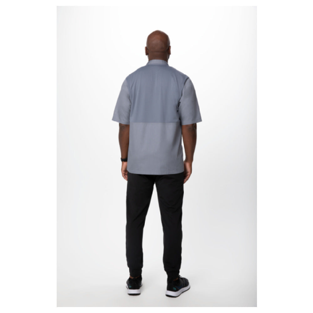 The Chef Works JLCV-GRY-2XL Montreal Chef Coat - double breasted, short sleeves, is an exemplary choice for culinary professionals seeking comfort and style in a demanding kitchen environment. Crafted with a 65/35 poly-cotton blend, this chef coat combines durability and breathability, catering to the needs of chefs who require resilience and ease of movement. The Cool Vent back yoke is a standout feature, enhancing airflow and ensuring the wearer remains cool even under pressure. A classic fit ensures a professional appearance while providing ample room for maneuverability. The coat's design includes cloth-covered buttons, adding a touch of elegance and maintaining a sleek, uniform look. Practicality is addressed with a left chest patch pocket and a thermometer pocket, allowing chefs to keep essential tools within easy reach. This coat's grey color and 2XL size make it a versatile option for various kitchen settings, from bustling restaurants to sophisticated private events. The Chef Works Montreal Chef Coat embodies a blend of functionality and aesthetics, making it a valuable asset for any professional chef aiming to maintain a distinguished presence while ensuring optimal performance in the kitchen.