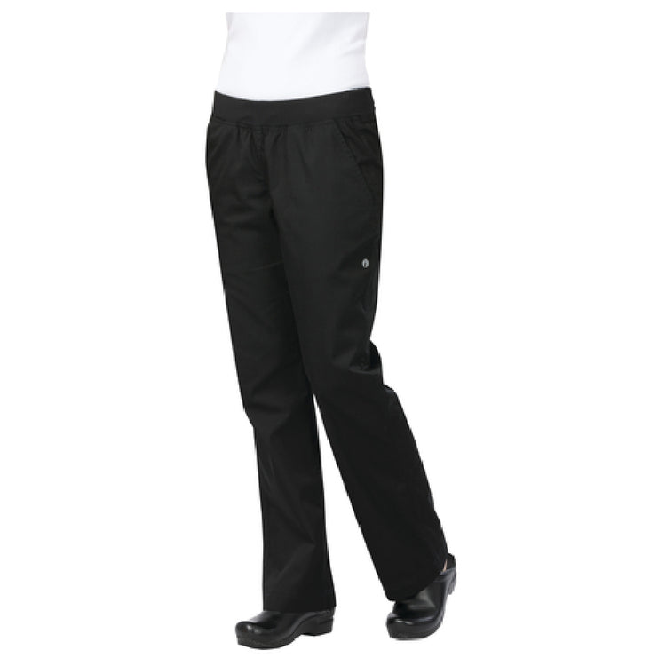 Chef Works PBN01W-BLK-M Women's Lightweight Slim Pants Contrast Elastic Waistband With Internal Drawstring