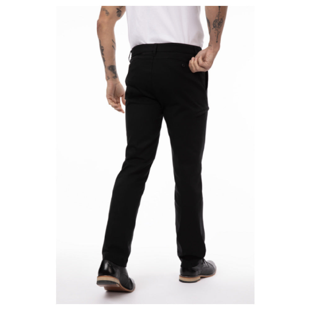 Chef Works PEC02-BLK-40 Chino Stretch Pants Four-way Stretch Fabric Two Back Inset Pockets With Button Closure