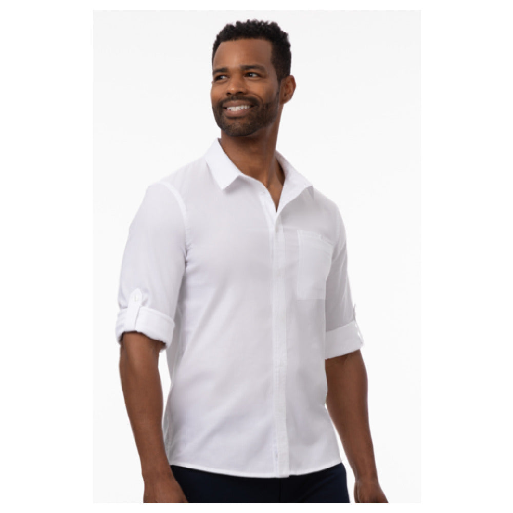 The Chef Works SES01-WHT-2XL Modern Oxford Classic Shirt is specifically designed to meet the dynamic needs of culinary professionals, offering a harmonious blend of style and functionality. This shirt is crafted from a durable and flexible 66/32/2 poly-cotton-elastane blend, ensuring both comfort and durability in demanding kitchen environments. The innovative snap front closure facilitates easy wearing and removal, enhancing convenience during busy shifts. Integrated with chest pockets, the shirt provides practical storage solutions for essential tools and accessories. A standout feature is the sleeve tab, which allows for seamless conversion from long to short sleeves, adapting to various kitchen climates and preferences. The contrast top stitching adds a sophisticated touch to the traditional white color, elevating its aesthetic appeal. Sized at 2XL, this shirt is tailored to provide a comfortable fit for a wide range of body types. Ideal for chefs, sous chefs, and kitchen staff, the Chef Works Modern Oxford Classic Shirt combines traditional design with modern features, making it an essential garment for professionals seeking both functionality and style in their work attire.