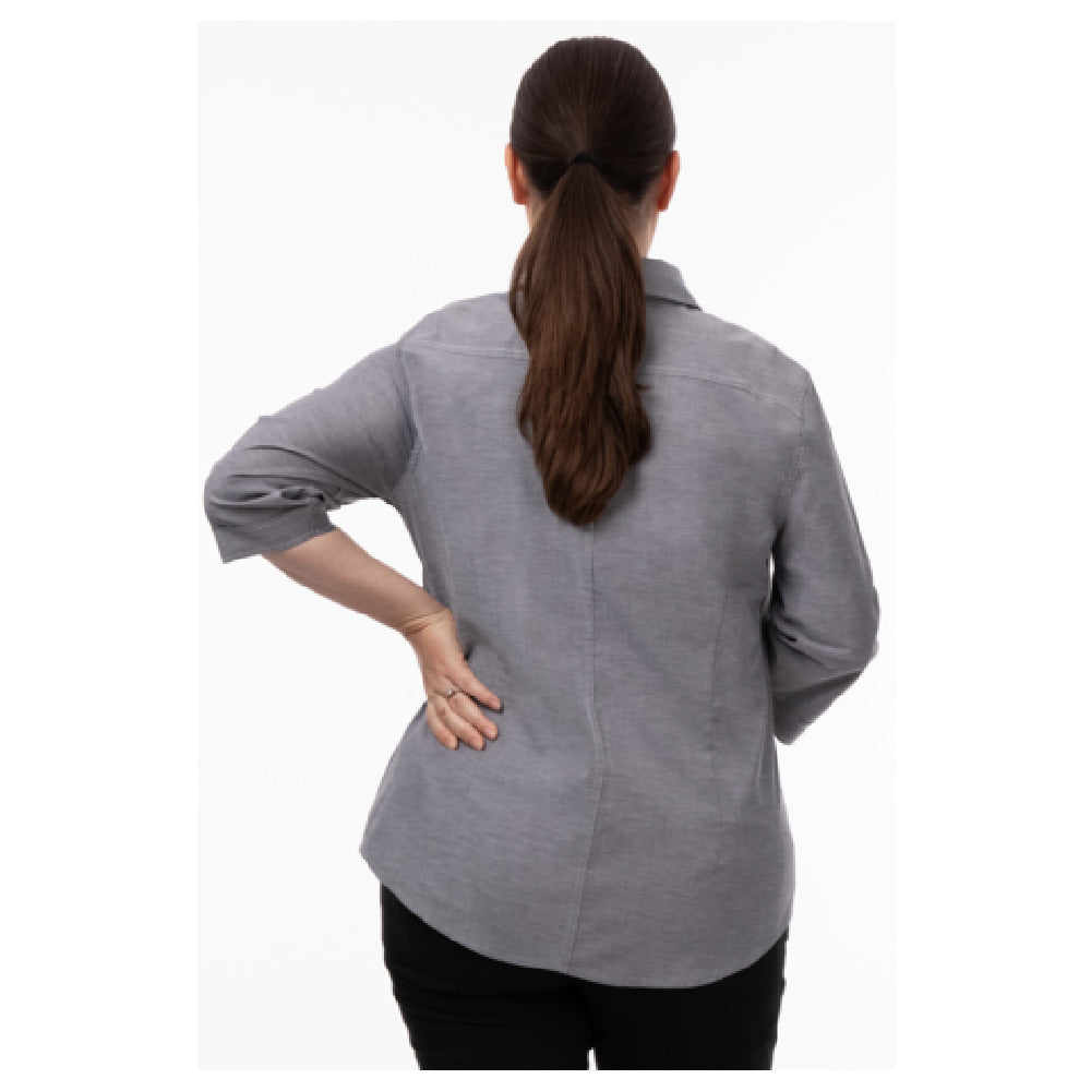 The Chef Works SES01W-CHR-XL Modern Oxford Classic Shirt is a sophisticated garment designed for culinary professionals, seamlessly blending style and functionality. Crafted from a stretch fabric composed of 66-32-2 poly-cotton-elastane, this shirt ensures comfort and flexibility, important for dynamic kitchen environments. The snap front closure is not only convenient but also adds a modern touch to the shirt's classic design, making it suitable for various professional settings. Featuring chest pockets, it provides practicality by offering additional storage space for essential items during busy shifts. The 3/4 length sleeves with cuffs enhance ease of movement, while the contrast top stitching adds a subtle style element. Available in a charcoal color and XL size, this shirt caters to a range of chefs looking for durable and stylish attire. The Chef Works Modern Oxford Classic Shirt represents a versatile choice for culinary professionals, combining essential features such as stretch fabric and practical design elements within a sleek, modern aesthetic. Its thoughtful construction makes it a valuable garment for chefs, restaurant staff, and anyone in the hospitality industry seeking reliable and stylish workwear.
