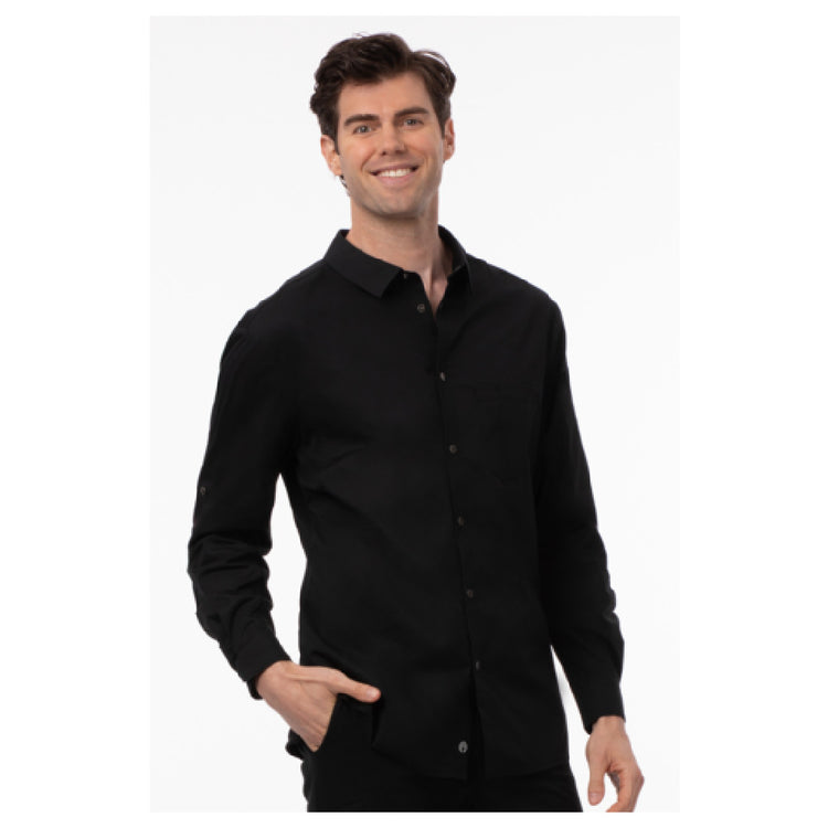 Chef Works SES02-BLK-XL Men's Seville Shirt Stretch Fabric Snap Front Closure