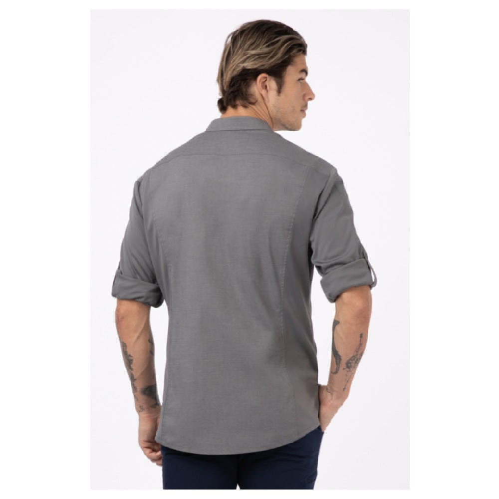 Chef Works SES02-GRY-4XL Men's Seville Shirt Stretch Fabric Snap Front Closure