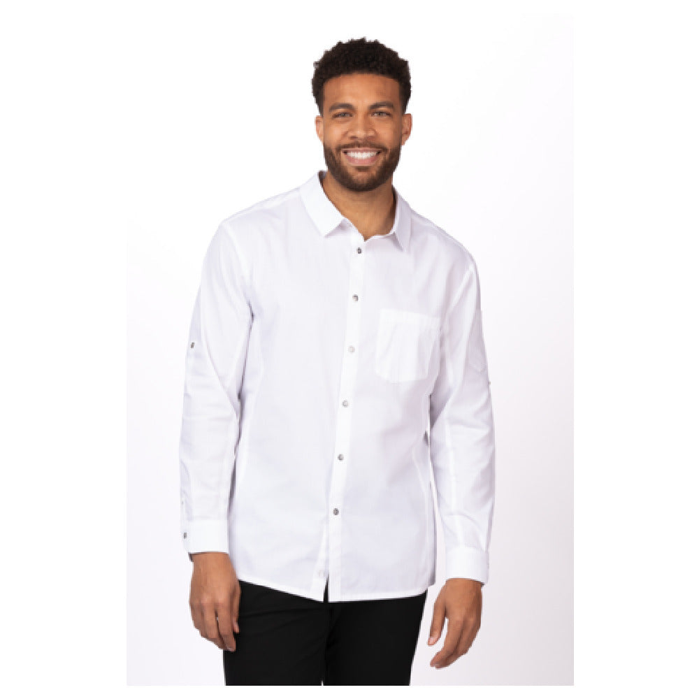 Chef Works SES02-WHT-2XL Men's Seville Shirt Stretch Fabric Snap Front Closure