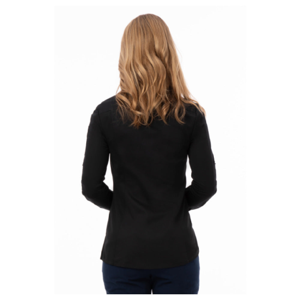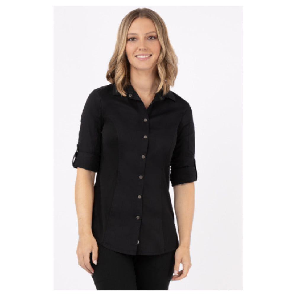 Chef Works SES02W-BLK-M Women's Seville Shirt Stretch Fabric Snap Front Closure