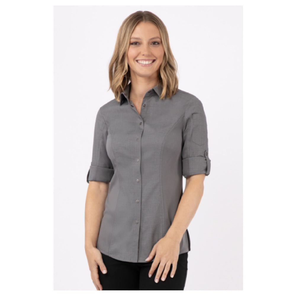 Chef Works SES02W-GRY-3XL Women's Seville Shirt Stretch Fabric Snap Front Closure