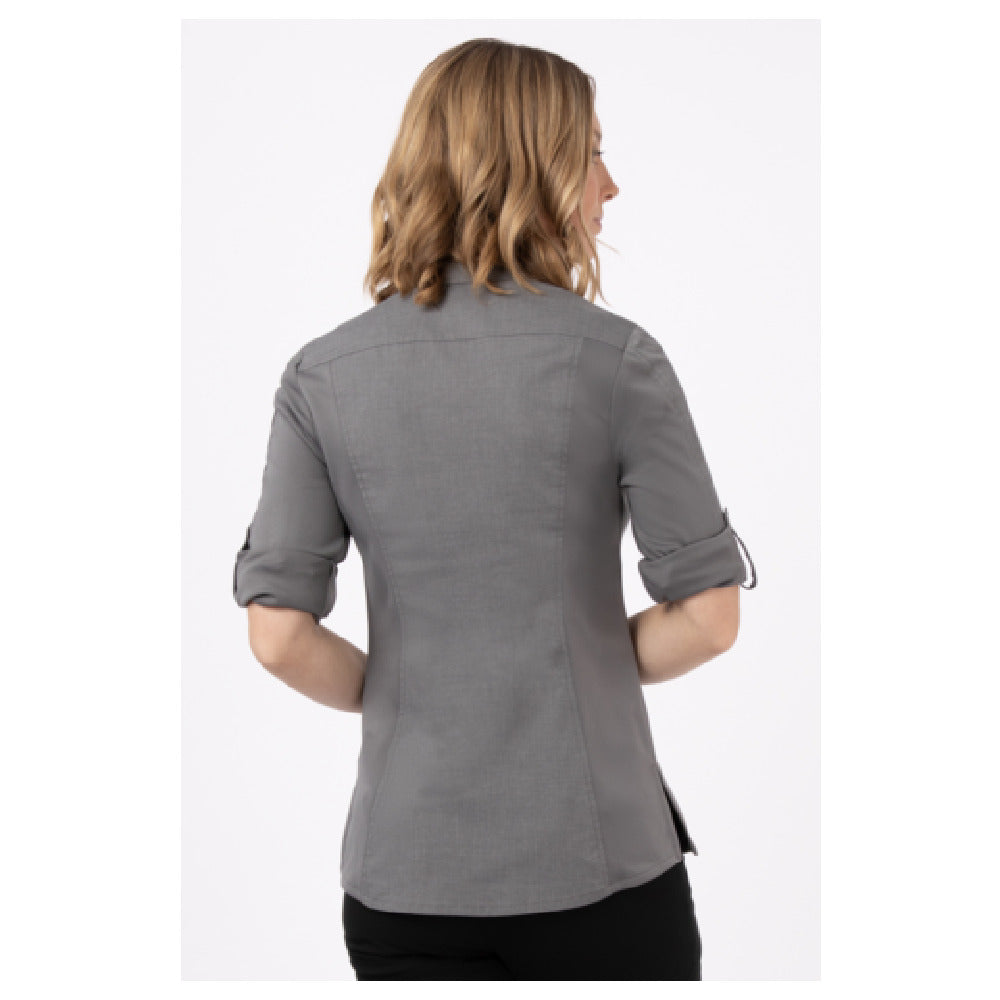 Chef Works SES02W-GRY-M Women's Seville Shirt Stretch Fabric Snap Front Closure