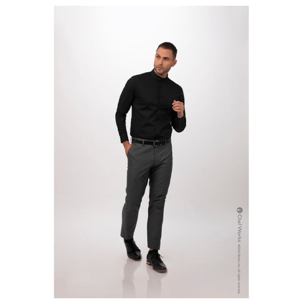 Chef Works SFB01-BLK-3XL Men's Formel Dress Shirt Long Sleeves Banded Collar With Button Closure Tab