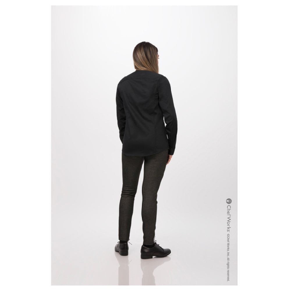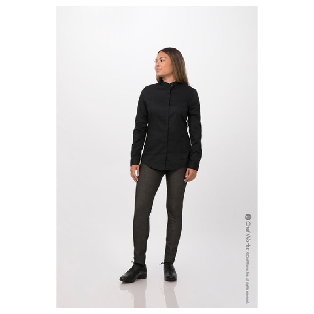 Chef Works SFB01W-BLK-L Women's Formel Dress Shirt Long Sleeves Banded Collar With Button Closure Tab