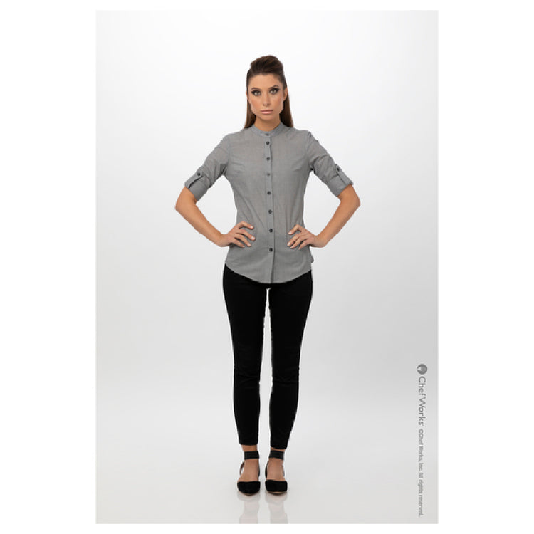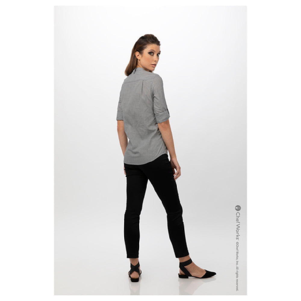 Chef Works SFB02W-BLK-XL Women's Verismo Dress Shirt Roll-up Long Sleeves With Button Tab