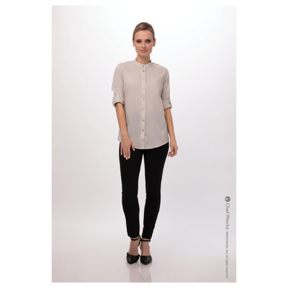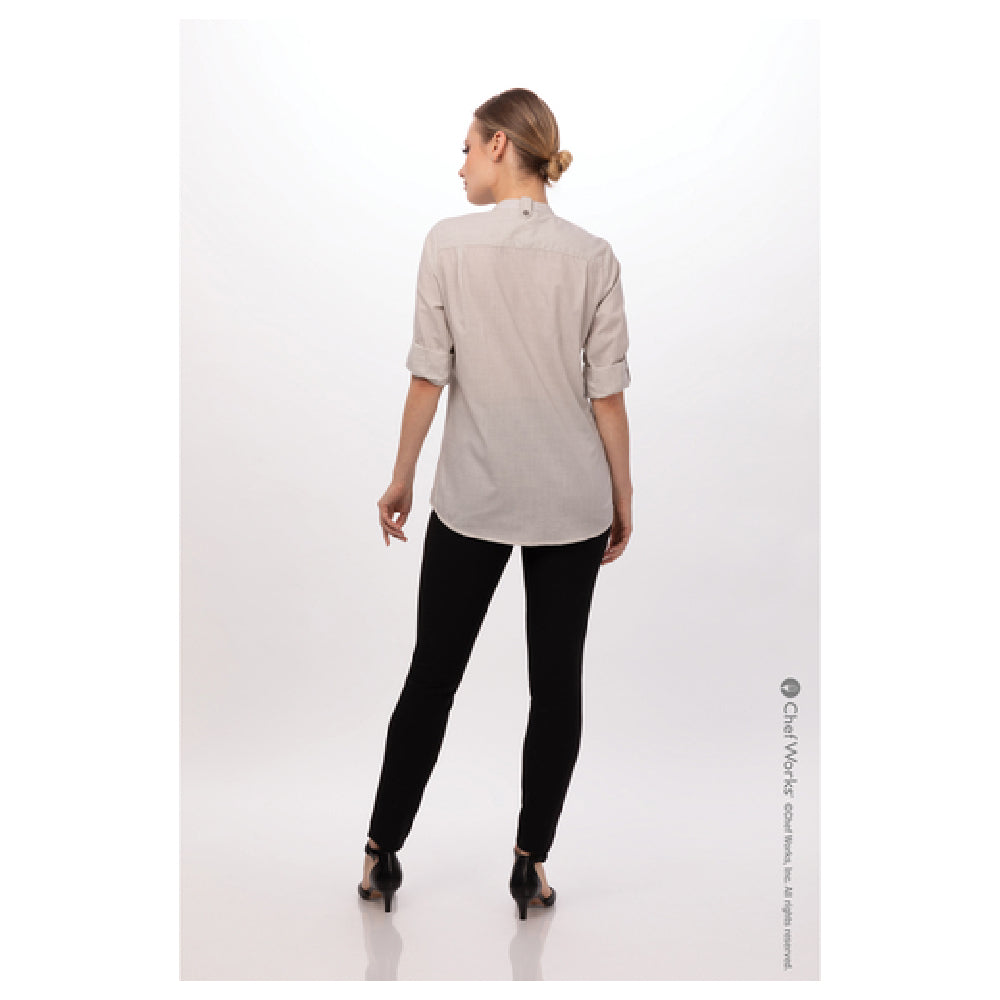 Chef Works SFB02W-NAT-M Women's Verismo Dress Shirt Roll-up Long Sleeves With Button Tab