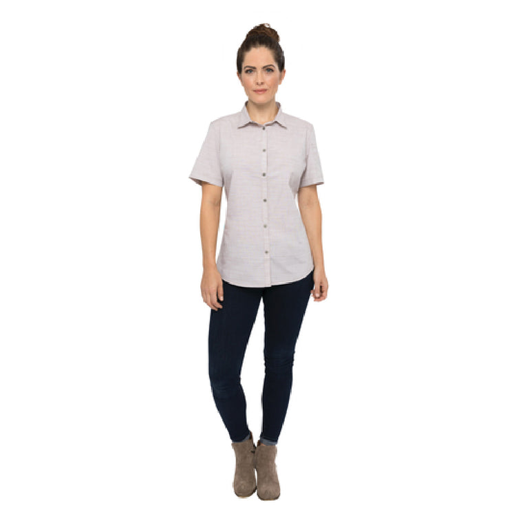 Chef Works SHC01W-TAU-M Women's Havana Shirt Short Sleeves Side Hem Detail