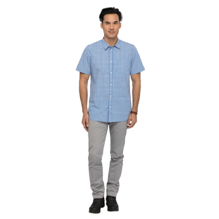 Chef Works SHC02-BLU-XL Men's Gingham Shirt Short Sleeves Contrast Fabric On Inner Sleeve Band
