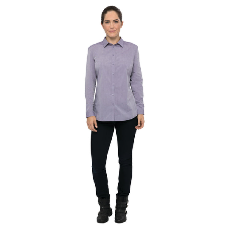 Chef Works SHC06W-PUR-L Women's Chambray Dress Shirt Roll-up Long Sleeves With Button Tab