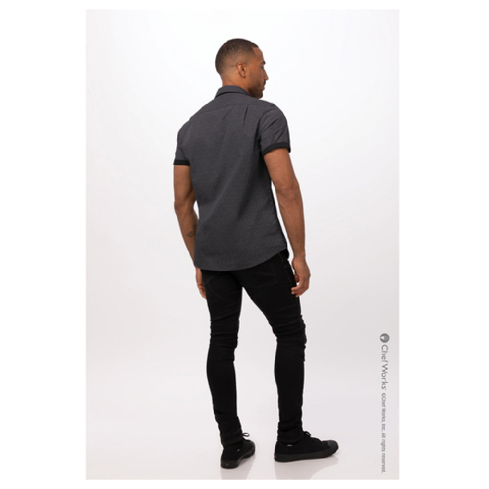 Chef Works SHC07-BLK-XL Men's Charleston Shirt Short Sleeves Contrast Fabric On Inner Sleeve Band & Inner Collar Band