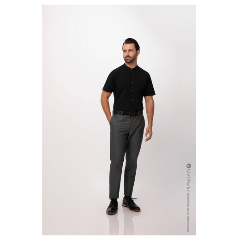 Chef Works SHC08-BLK-3XL Men's Seersucker Shirt Short Sleeves Snap Front Closure