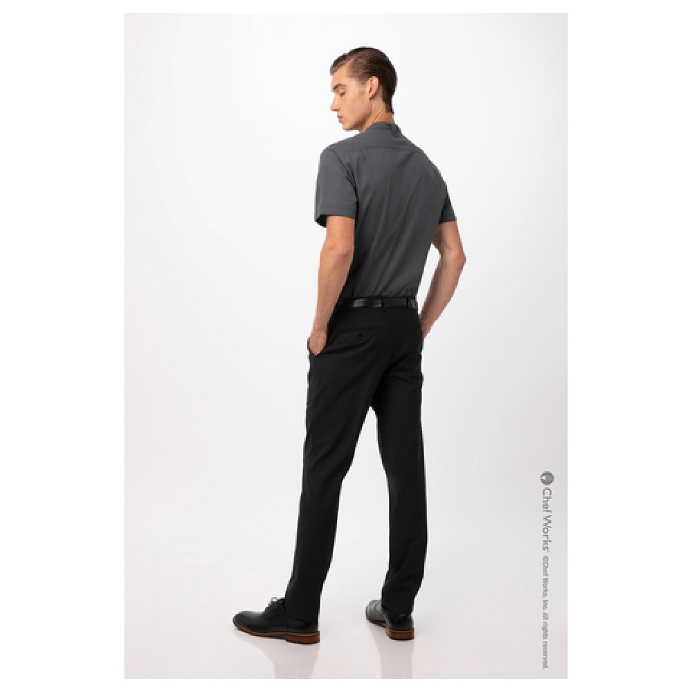 The Chef Works SHC08-CHR-XL Men's Seersucker Shirt is a meticulously designed garment, tailored for culinary professionals seeking both style and functionality. This shirt features a short-sleeve design and a snap front closure, making it a practical choice for busy kitchen environments. Its banded collar is enhanced with a back collar apron holder snap tab, providing a convenient solution for those who wear aprons regularly. The left sleeve inset pocket offers a handy storage space for small essentials, ensuring they are always within easy reach. Constructed from a durable 65/35 poly/cotton blend, this shirt is designed to withstand the rigors of a bustling kitchen while maintaining comfort. The back yoke with darts provides a tailored fit, enhancing both the shirt's appearance and comfort. Side seam slits add to the ease of movement, vital for those constantly on the go. Available in a charcoal color, the SHC08-CHR-XL comes in size XL, catering to larger frames. This seersucker shirt not only meets the aesthetic and practical needs of chefs but is also an excellent choice for other hospitality professionals who prioritize both form and function in their work attire.