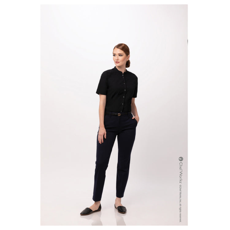 Chef Works SHC08W-BLK-L Women's Seersucker Shirt Short Sleeves Snap Front Closure & Front Darts