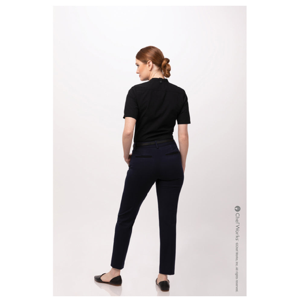 Chef Works SHC08W-BLK-S Women's Seersucker Shirt Short Sleeves Snap Front Closure & Front Darts
