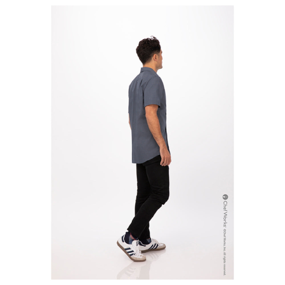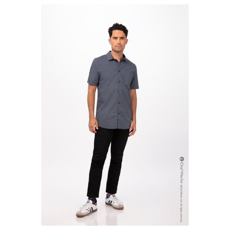 Chef Works SHC09-NAV-S Men's Malibu Shirt Short Sleeves Matching Button Front