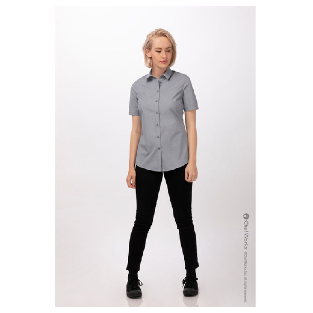 Chef Works SHC09W-GRY-L Women's Malibu Shirt Short Sleeves Matching Button Front