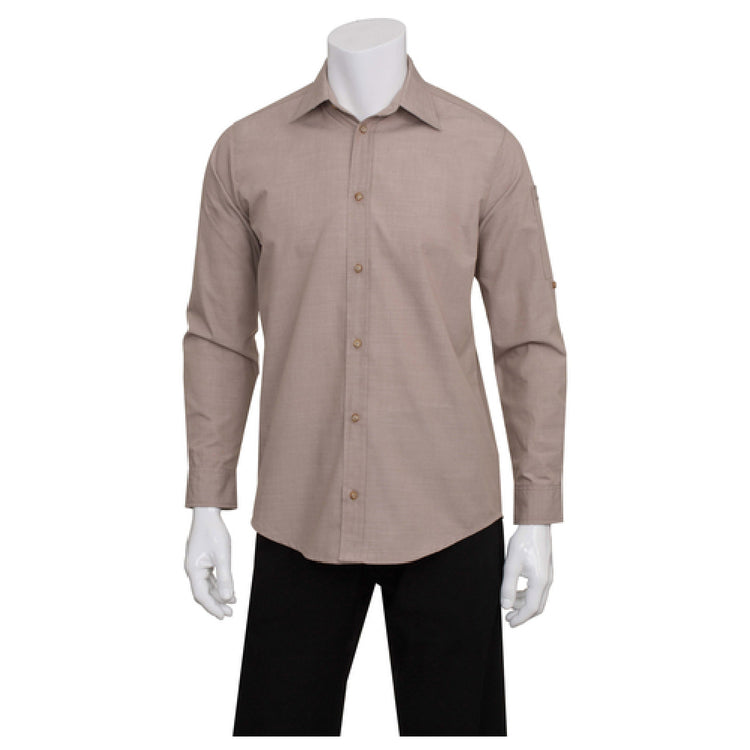 Chef Works SLMCH005ECR3XL Men's Chambray Dress Shirt Roll-up Long Sleeves With Button Tab