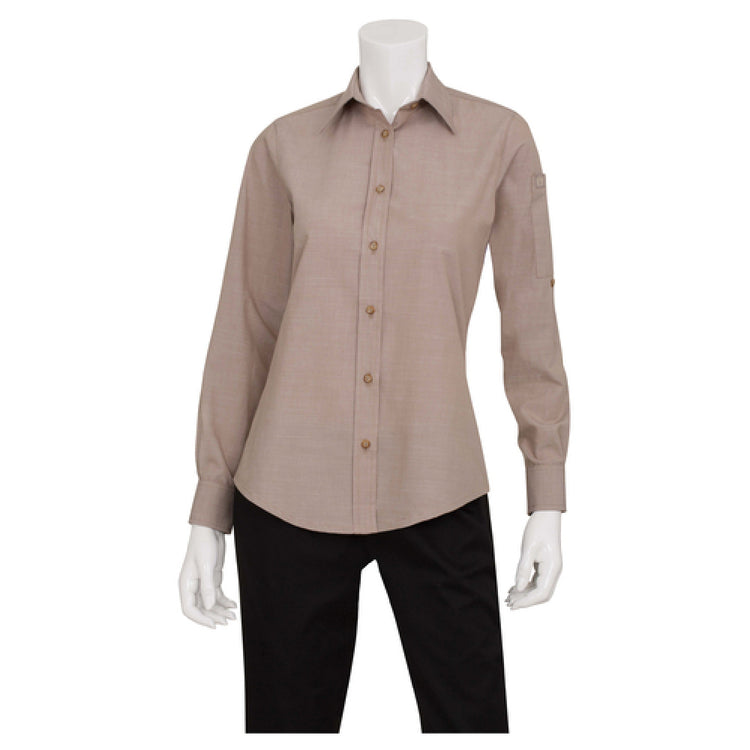 Chef Works SLWCH002-ECR-S Women's Chambray Dress Shirt Roll-up Long Sleeves With Button Tab