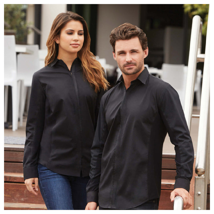 Chef Works SLWFZ003-BLK-L Women's Shirt Long Sleeves 2-button Adjustable Cuffs