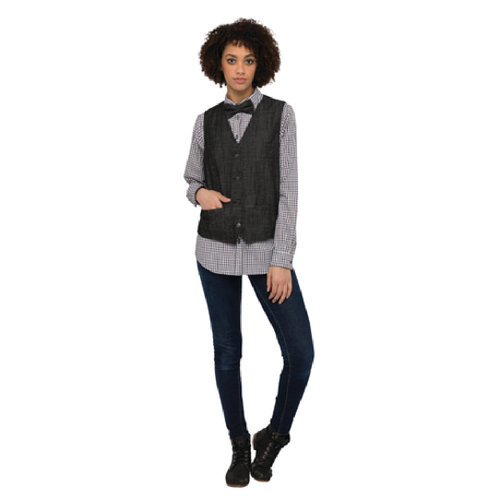 Chef Works VNN01WBLKS Women's Augustine Vest Paisley Lining Button Front Closure (2nd Button Branded Detail)