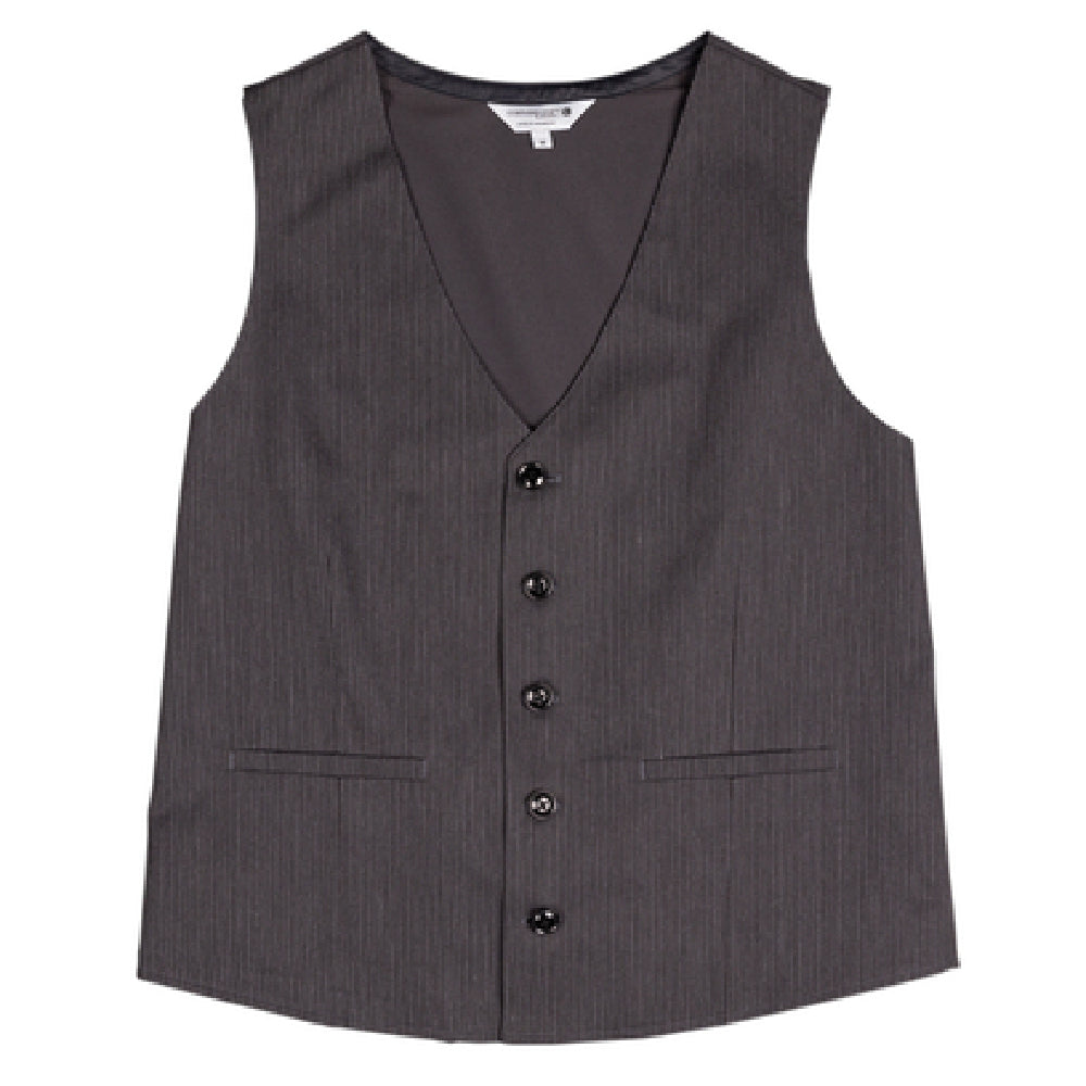 Chef Works VNN02-PNS-3XL Men's Bridge Vest V-neck Half Lined is a high-quality garment designed specifically for professionals in the culinary and hospitality industries. This vest features a classic v-neck design with a button front closure that fastens from left to right. It is half lined, providing a balance of comfort and structure, making it suitable for long shifts in dynamic working environments. The vest includes one inner pen pocket and two front welt pockets, offering practical storage solutions for chefs and service staff who require quick access to essential tools. Additionally, the back ties with an adjustable slider and a stretch back insert ensure a customizable fit that accommodates a range of body movements without compromising on style. Crafted from a durable 65/35 poly-cotton blend, the vest is both breathable and hard-wearing, maintaining its sharp pinstripe appearance through frequent use. Available in size 3XL, this vest caters to a variety of body types, enhancing its inclusivity in the professional wardrobe. The Chef Works Men's Bridge Vest is a versatile garment, balancing functionality and elegance, making it a preferred choice for chefs, waitstaff, and other hospitality professionals seeking reliable attire that complements their demanding roles.