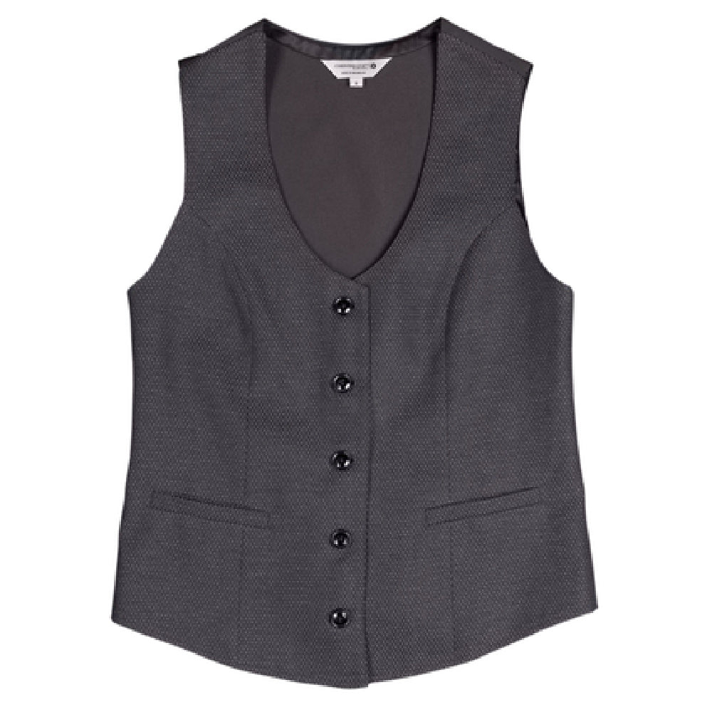 The Chef Works VNN02WDIAXS Women's Bridge Vest V-neck Half Lined is a meticulously crafted garment designed to meet the diverse needs of culinary professionals. This vest boasts a v-neck design and is half lined, offering a balance of comfort and style. The button front closure, which fastens from right to left, adds a tailored fit, enhancing its professional appearance. Functionality is at the forefront of its design with one inner pen pocket and two front welt pockets, providing ample storage for essential tools and personal items. The back ties with an adjustable slider ensure a customizable fit, while the stretch back insert offers increased mobility and flexibility, crucial for dynamic kitchen environments. Made from a durable 65/35 poly-cotton blend, this vest is both resilient and easy to care for, making it an ideal choice for the rigors of the hospitality industry. Its gray diamond pattern adds a touch of sophistication, while the extra small size ensures a precise fit for petite professionals. The Chef Works Women's Bridge Vest combines practicality with a polished appearance, making it an essential addition to any culinary wardrobe.