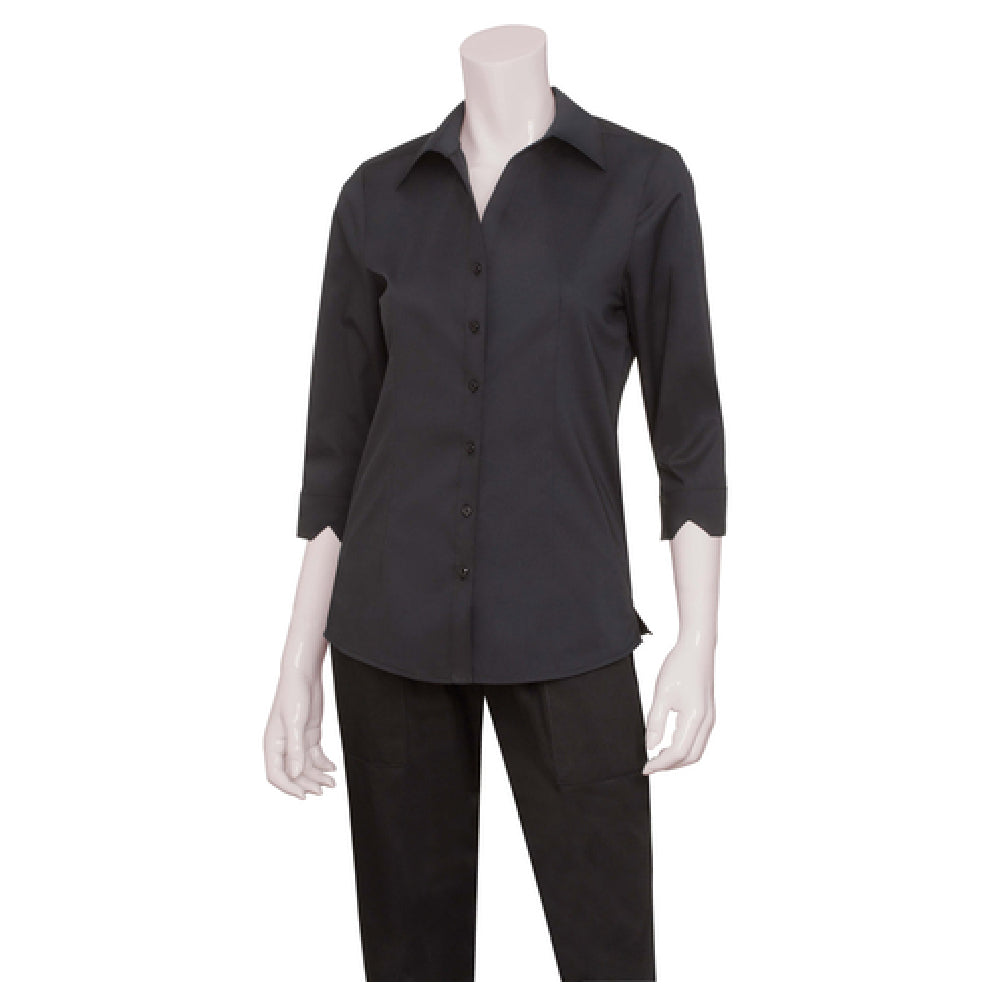 Chef Works WA34-BLK-3XL Women's Finesse Shirt Fitted Design 3/4 Sleeves