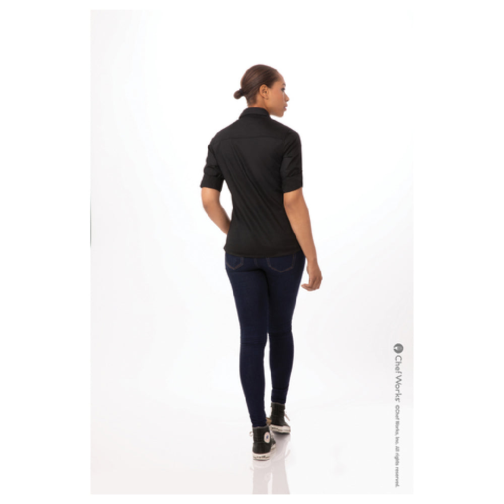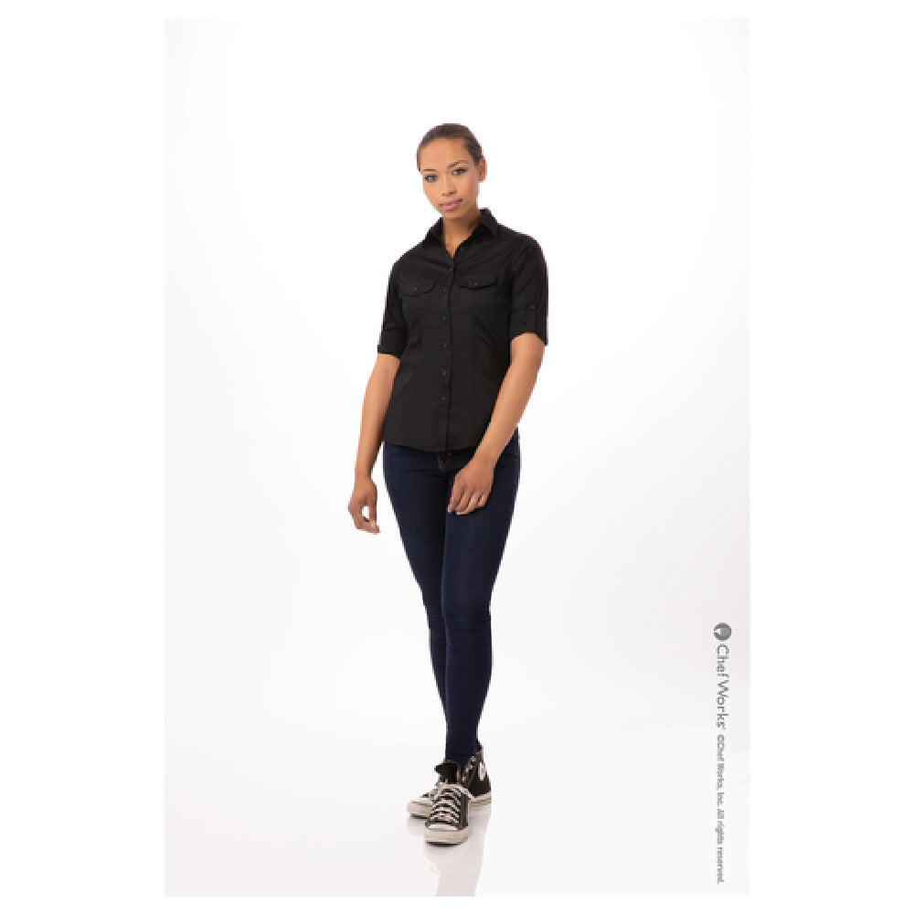 Chef Works WPDS-BLK-3XL Women's Shirt Roll-up Long Sleeves With Button Tab 2-button Cuffs